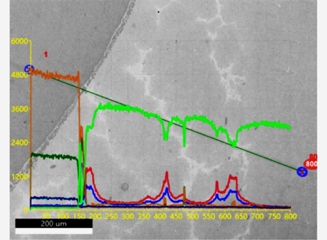 EDS line scanning reveals how elements and impurities are distributed within a welded area, helping researchers evaluate material consistency.